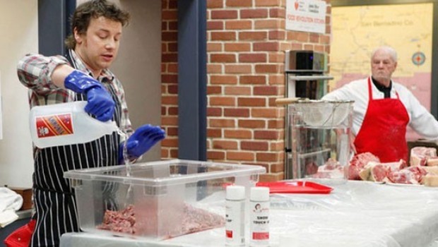 En su programa "Jamie Oliver's Food Revolution" muestró el proceso de lavado de la carne.