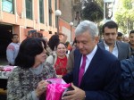 Acompañado por dos de sus hijos y su esposa, Beatriz Gutiérrez, el dos veces candidato presidencial fue recibido por simpatizantes en medio de ovación y muestras de cariño.