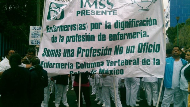 "Falta un programa de profesionalización real para los trabajadores del sector salud además hay unaprecarización de los insumos en los hospitales. Estamos trabajando sin medicamentos, sin uniformes. Por ejemplo, en un hospital tenemos 10 cómodos para 37 pacientes”, señaló Adriana Talavera, vocera en turno de los enfermeros inconformes con las condiciones laborales que tienen que enfrentar día a día.