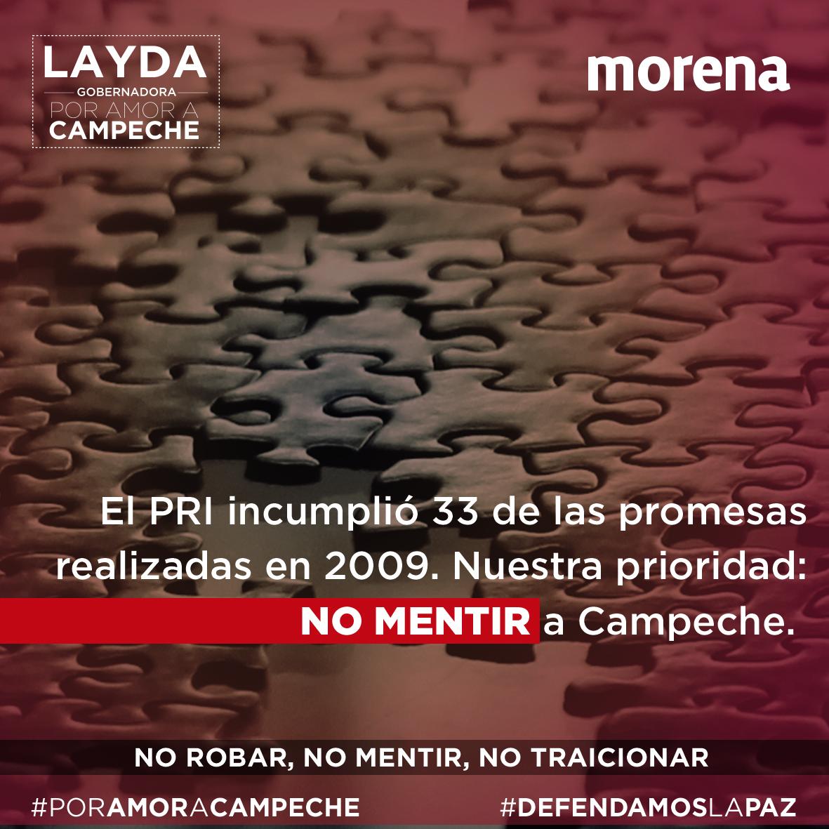 #PorAmorACampeche El PRI incumplió 33 de las promesas realizadas en 2009. Nuestra prioridad:No mentirle a Campeche