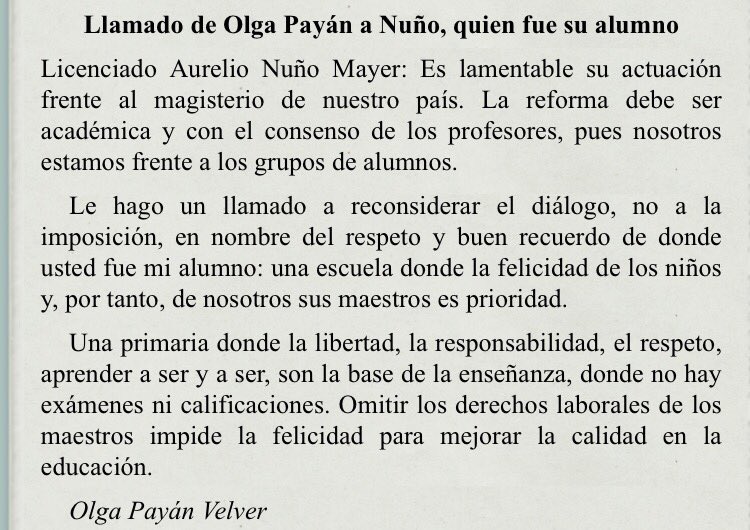 La maestra de primaria de le escribe carta.Él fue a escuela sin exámenes, no será igual para niños mex.