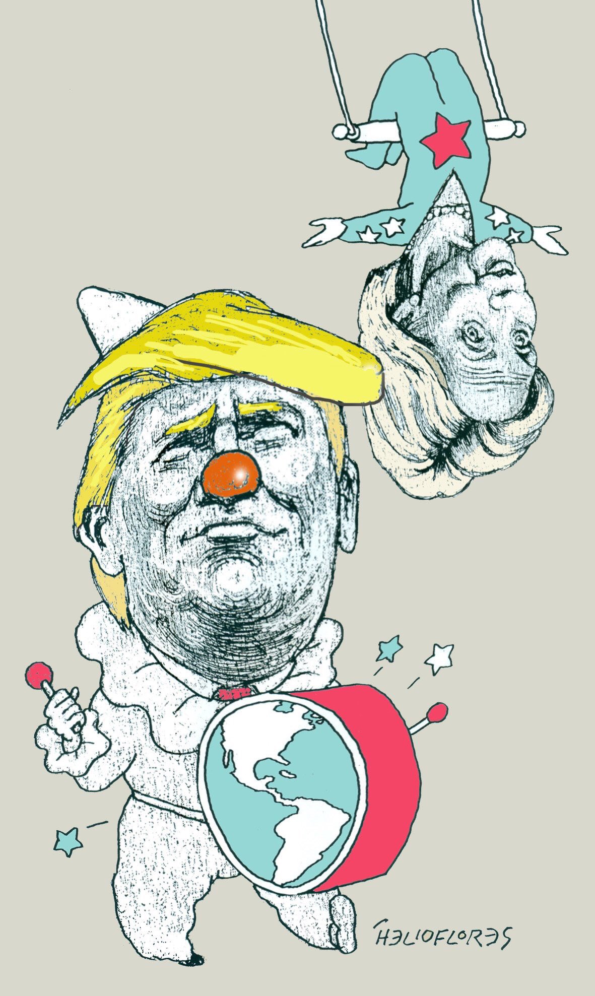 Así presenta su cartón de hoy: "CIRCO: El payaso escandaloso y la habilidosa trapecista"