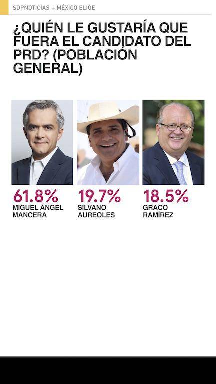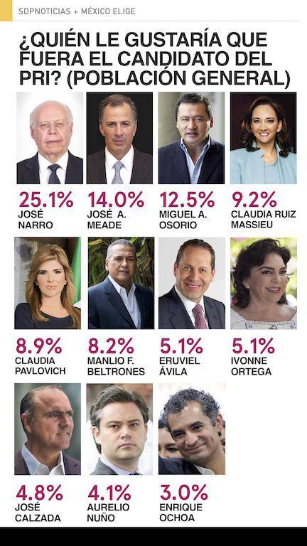La población en general mantiene a Narro como el candidato favorito por el PRI, seguido de José Antonio Meade, quien disminuye dos puntos respecto el mes anterior. Osorio se mantiene. En un empate técnico del cuarto lugar están Ruiz Massieu, Pavlovich y Beltrones.