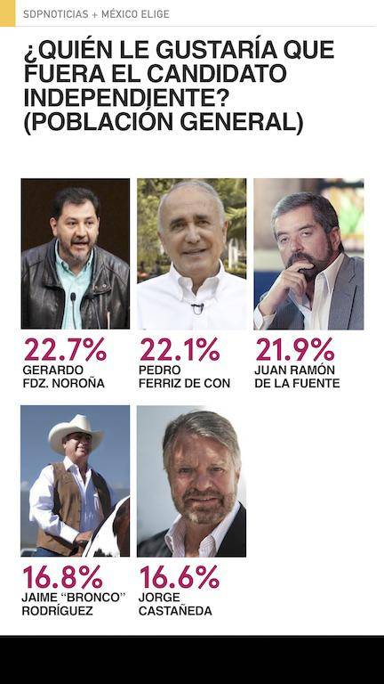 La preferencia en la candidatura independiente presenta ahora un empate técnico en el primer lugar entre Fernández Noroña, Ferriz de Con y de la Fuente.
