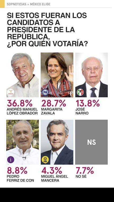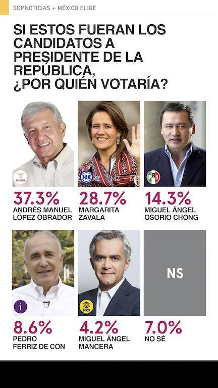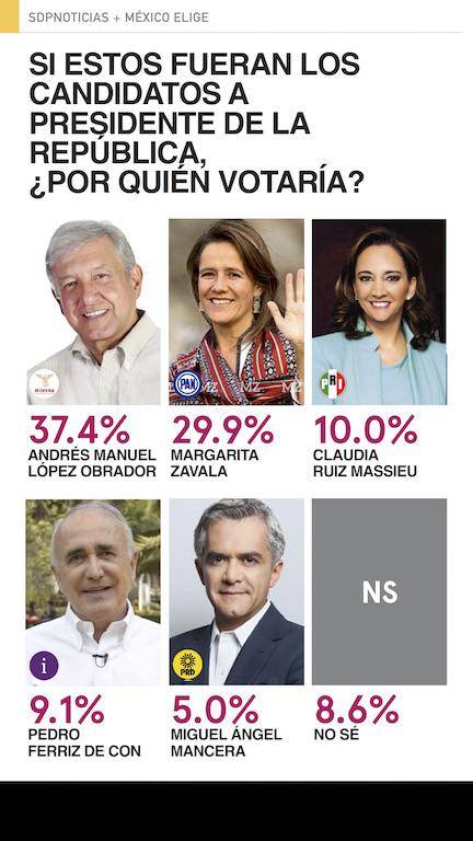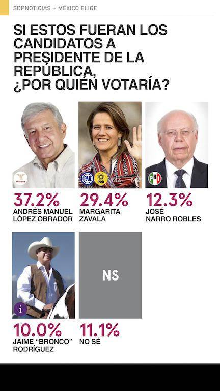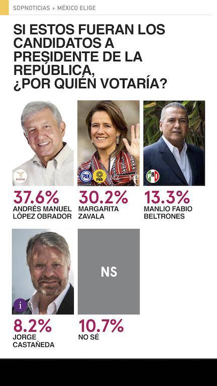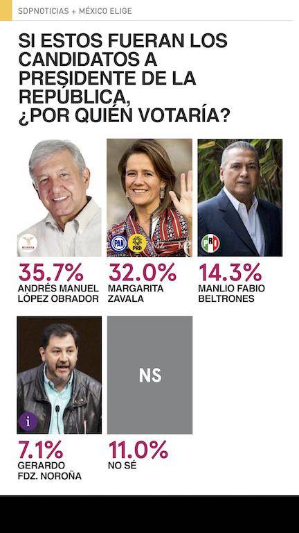 Encuesta: AMLO líder en todos los escenarios; Margarita, la mejor del PAN; el PRI tercero