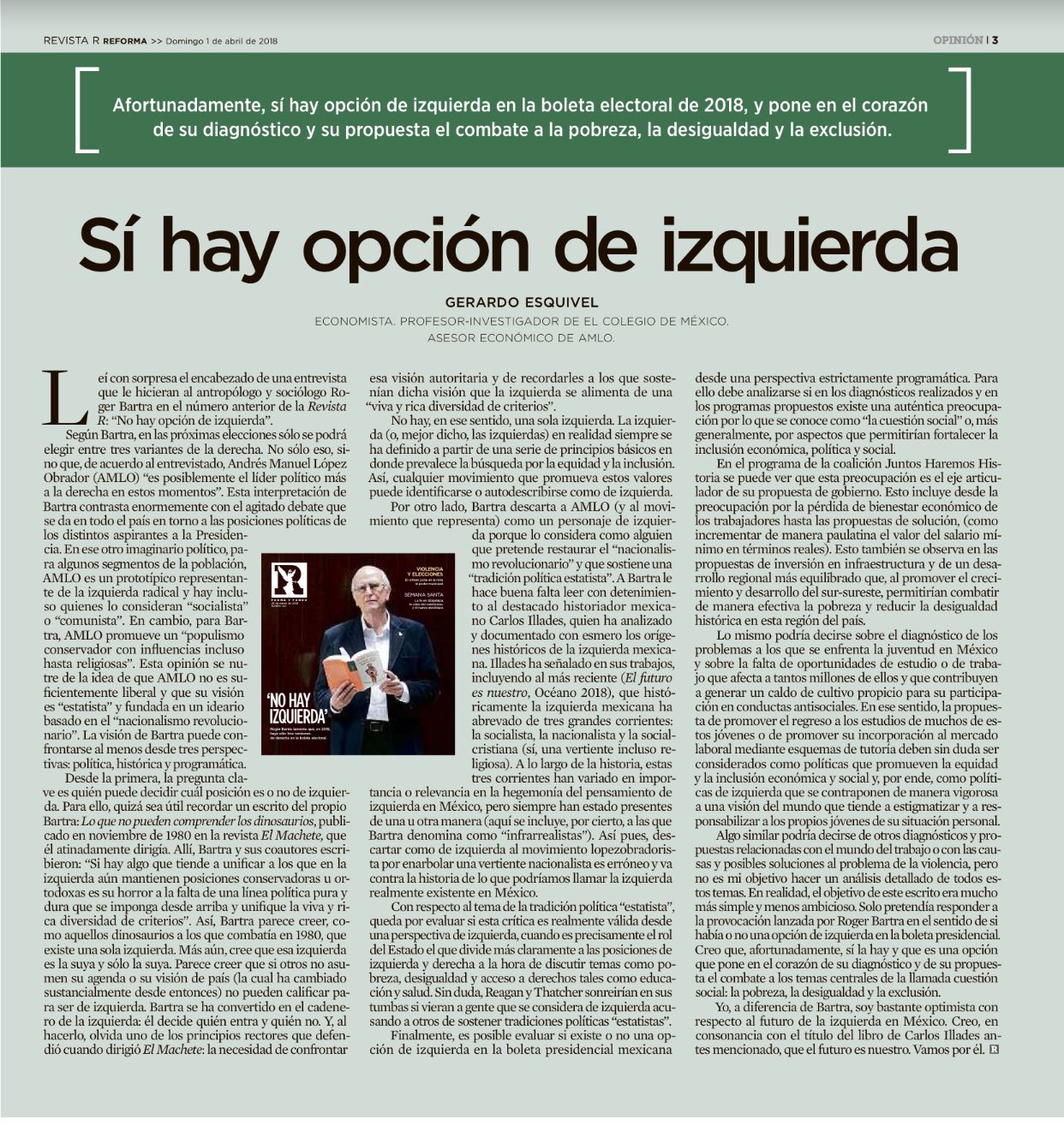 Mi respuesta a Roger Bartra sobre aquello de que "No hay opción de izquierda":