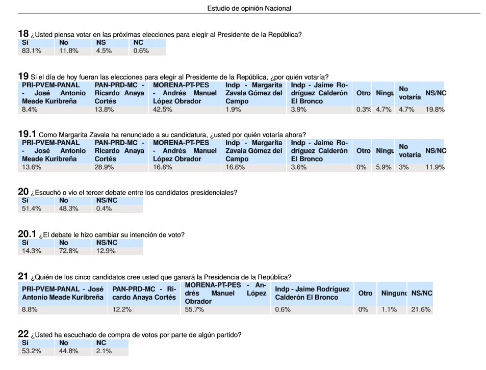 Encuesta nacional domiciliaria del fin de semana. Fue realizada por nuestros técnicos de probada honestidad; no está cuchareada. Aunque vamos «requetebién», nada de confiarnos, está de por medio el destino de México. Voto masivo por la transformación https://bit.ly/2MCk8ps