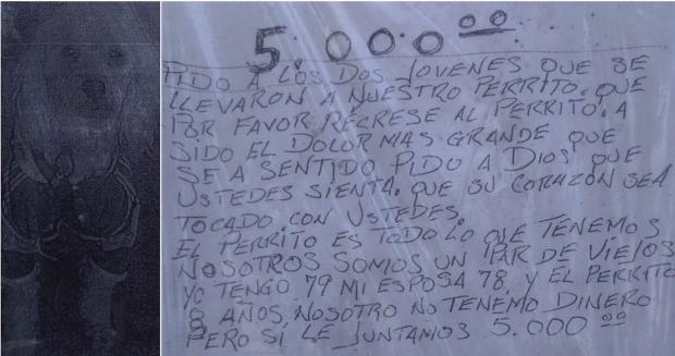 "Somos un par de viejos, yo tengo 79 y mi esposa 78, y el perrito 8 años, nosotros no tenemos dinero peros sí le juntamos 5.000".