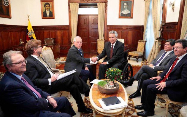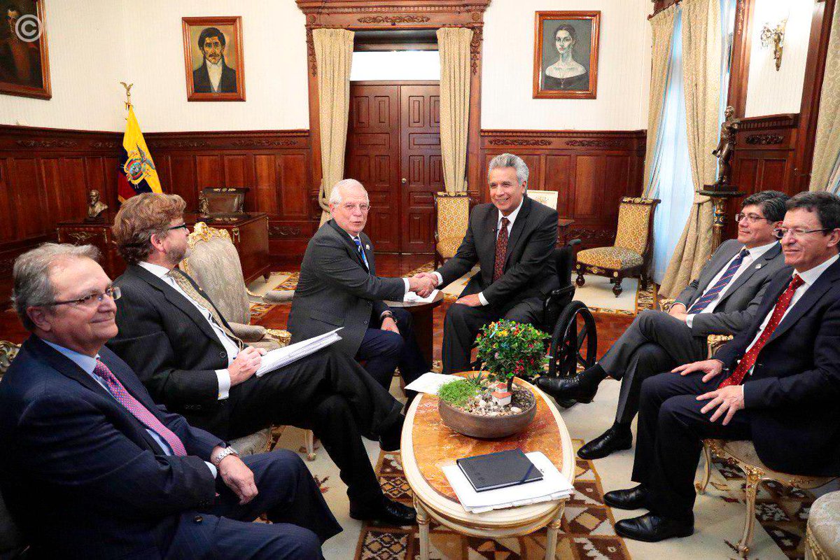 El presidente ecuatoriano recibió a Borrell poco después de una breve reunión que mantuvo con la alta representante europea de Política Exterior, Federica Mogherini, quien acababa de copresidir con Ecuador la II Reunión del Grupo de Contacto Internacional para Venezuela.