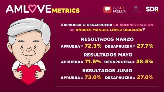Por la luna de miel de Andrés Manuel con el presidente de México, el trabajo que presentamos en SDP Noticias se llama AMLOVEmetrics. Si su popularidad o aprobación cayeran fuertemente, tendríamos que cambiar el nombre a ODIO/AMLOmetrics o algo así. No ha ocurrido. Ya van siete meses de gobierno y el presidente de México sigue siendo una persona querida por la gente.